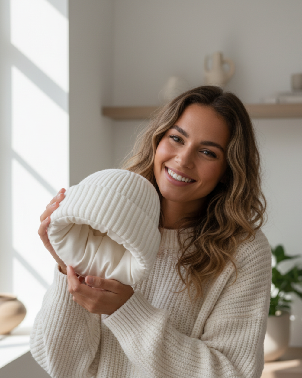 En mössa som inte bara håller dig varm, utan också bevarar hårets glans, minskar friss och känns mjuk mot varje hårstrå.